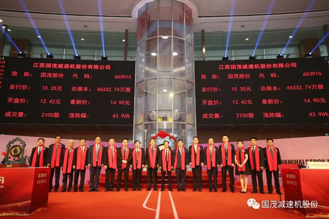 熱烈祝賀國茂集團子公司江蘇國茂減速機股份有限公司成功在上海證券交易所正式掛牌上市!?